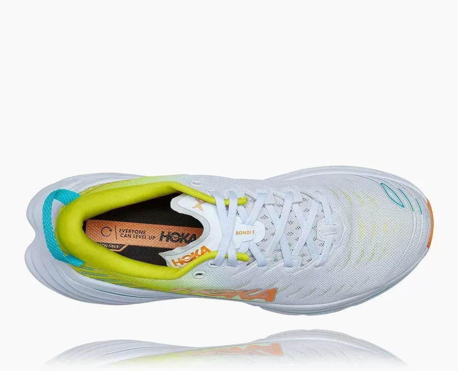 The Bondi X features a higher bed of soft cushion, designed to provide a forgiving impact and ride.