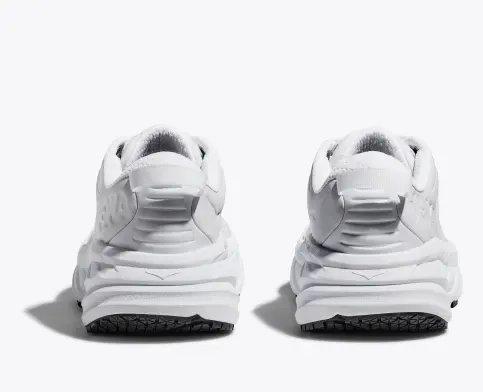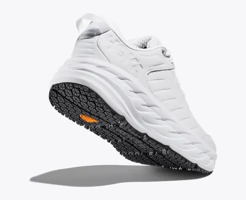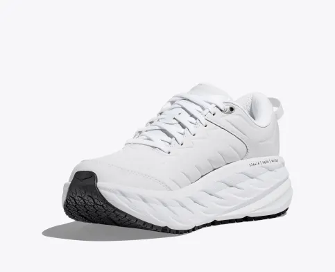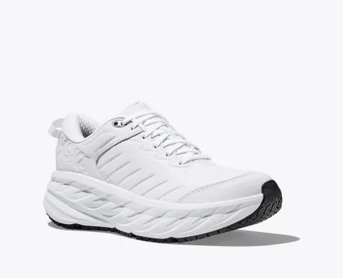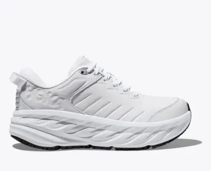 One of the first line extensions of the beloved Bondi family, the new Bondi SR takes the mostcushioned shoe in the road-shoe lineup and reworks the silhouette to handle the demandsof daily life. Engineered with an EVA midsole for plush, all-day cushioning, this workplace warriorhas been updated with water-resistant leather and a slip-resistant outsole. Boasting a proprietaryoutsole compound tested against industry standards, the Bondi SR features an ultra-grippy, fullground contact rubber that stands up to the service industry and medical field alike.